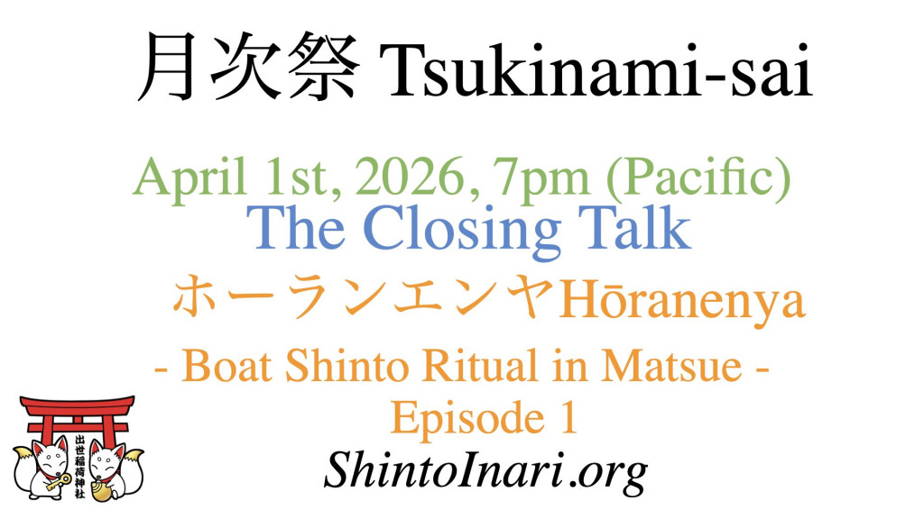 Please join us for our monthly ceremony! Our April Tsukinami-sai will be held on Wednesday, April 1st at 7:00 PM (PT) on our “ShintoInari” YouTube channel. Remember, the Closing Talk is open to Members only. To become a member please go to our membership page or on Join It.