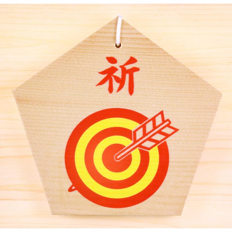 This Ema is blessed for passing examinations or auditions, as expressed in the picture of an arrow shot in the center of a target. Please write your wishes for passing an examination or audition on the back.