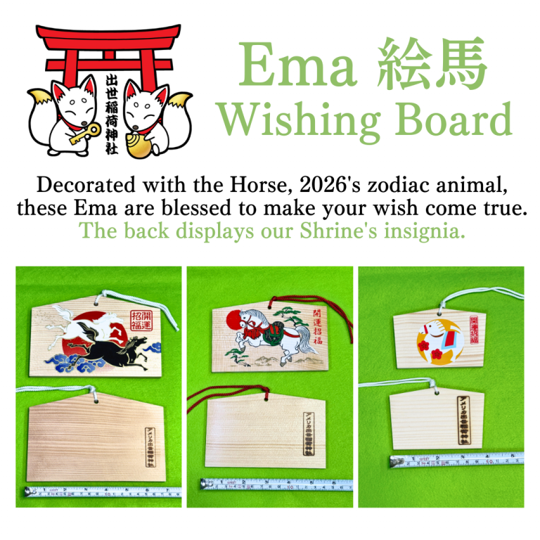 Please display the Ema high on the north or west wall, or put them on a shelf in your living room or workplace. We recommend you replace it with a new one after one year. Please send back old Ema to us for Bonfire Ritual.